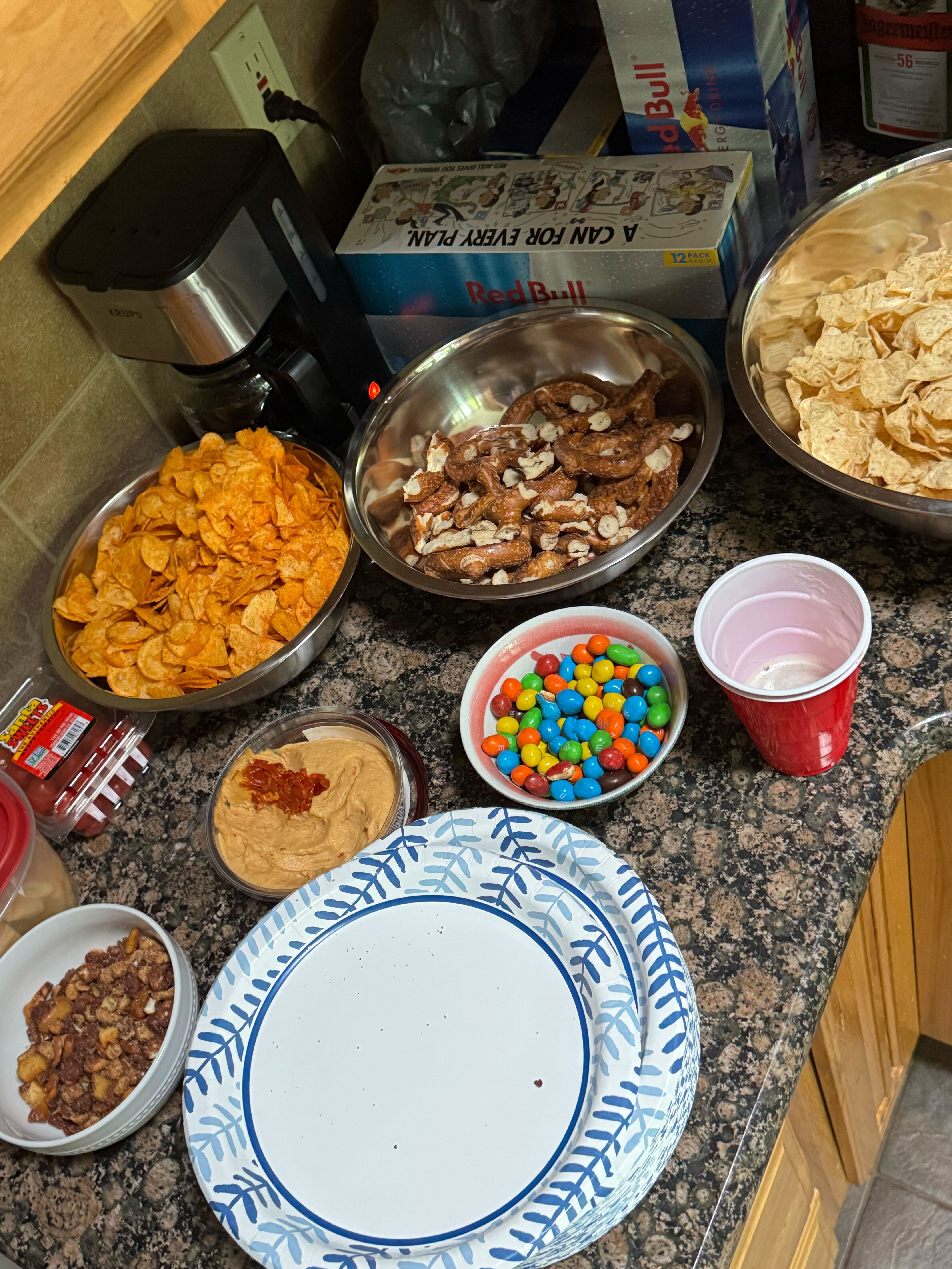 Of course, copious other foods were offered up by our gracious host. Many donuts were consumed, one half at a time.